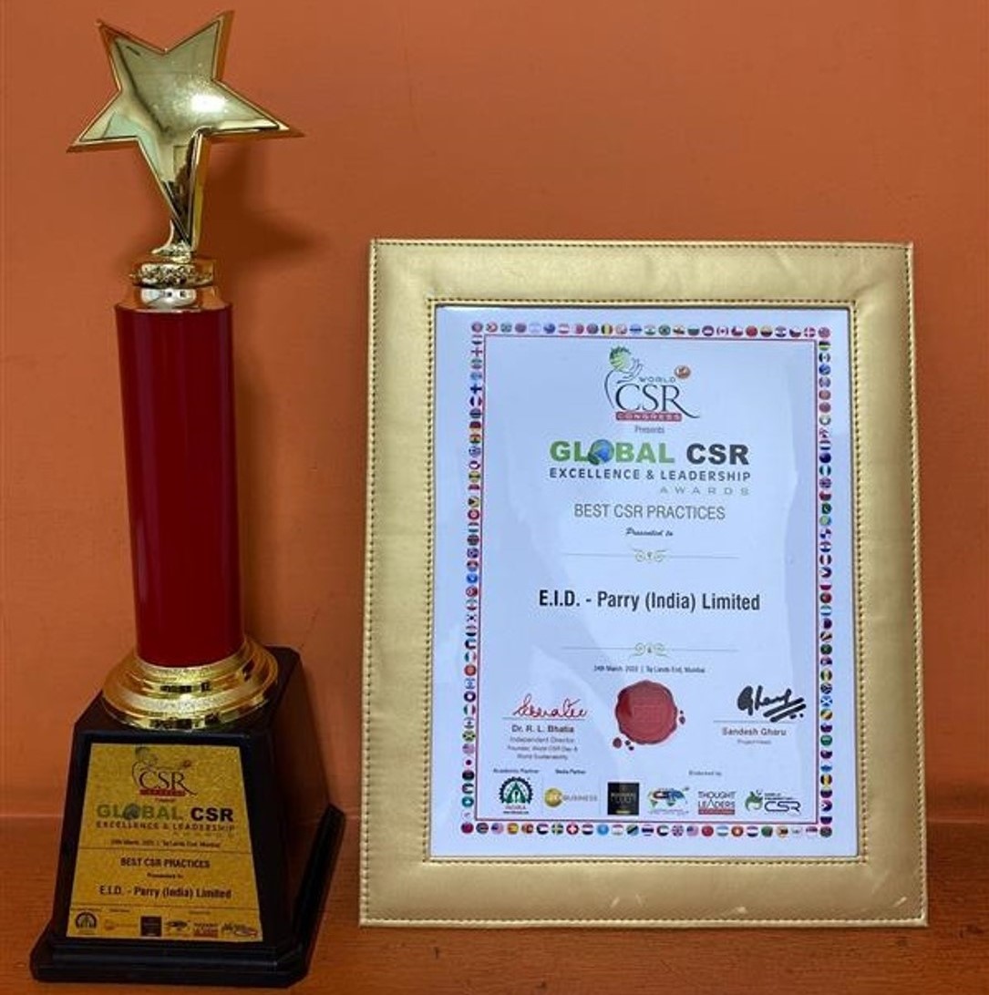 • EID Parry was honoured with the ‘Most Iconic Organisation Award’ on May 11, 2023 at Coimbatore Leadership Awards in appreciation of the best practices followed by the Company in HR strategy, promoting future ready business practices, best employee recognition programs to retain talented resources, encouraging diversity and inclusion at workplace and for being a responsible corporate citizen by implementing impactful CSR initiatives across its manufacturing facilities.